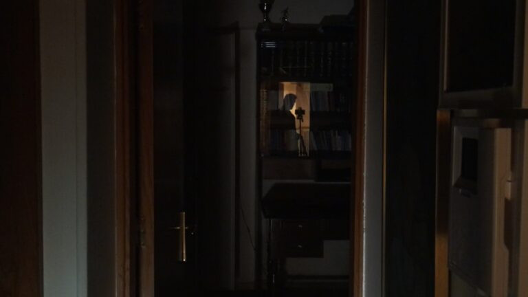 Un an après la mort de ma mère, je retourne dans l’appartement à moitié vide de mon enfance. Je filme l’espace avec mon téléphone, revisitant les mouvements de mon passé de caméraman. Des souvenirs refont surface, dont une révélation de mon grand-père, qui prétend que mon père était impliqué dans la police militaire de la dictature grecque, responsable de tortures. Je n’ai jamais confirmé cette rumeur, ma famille étouffait la discussion d’un « Lo » signifiant « tais-toi ».