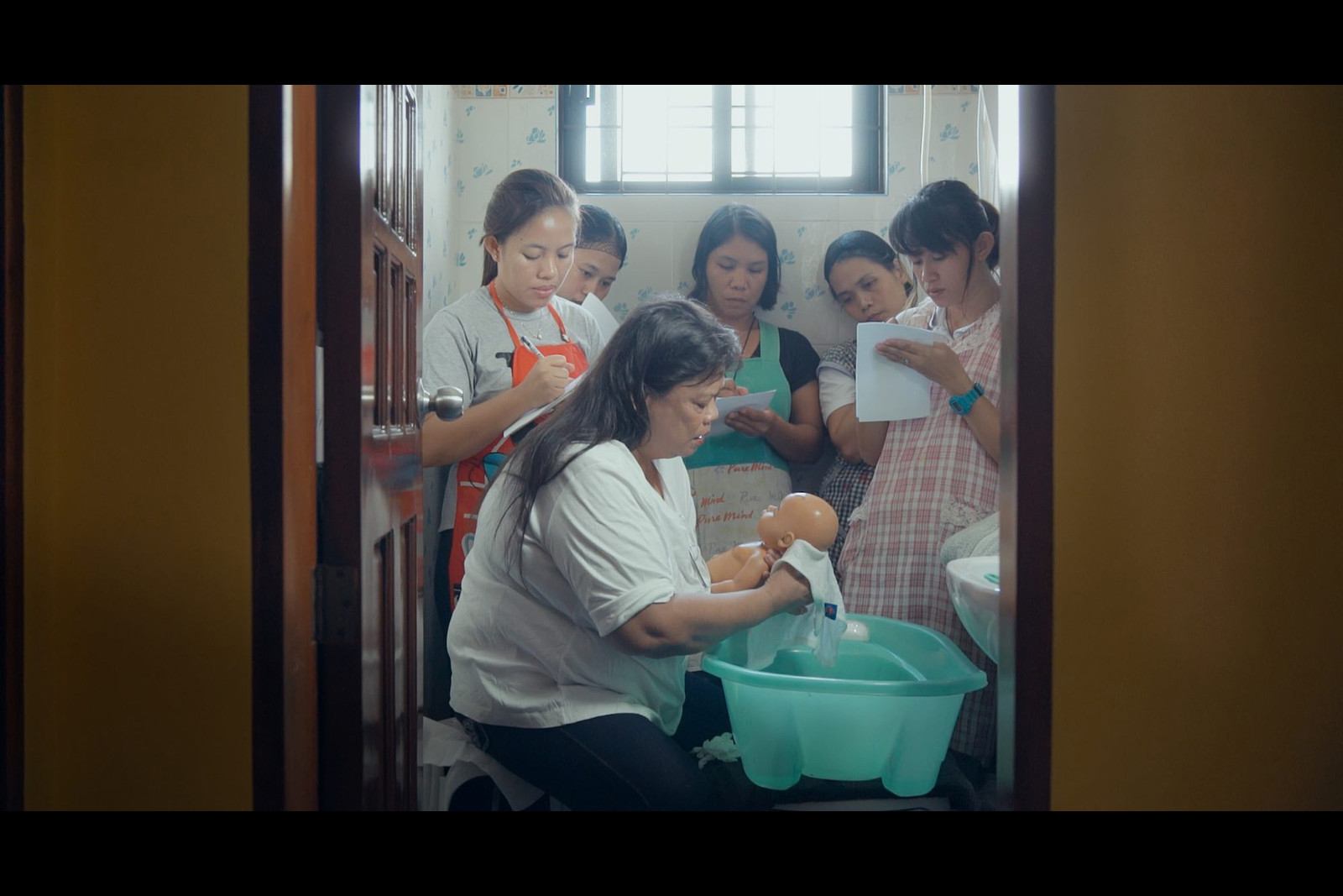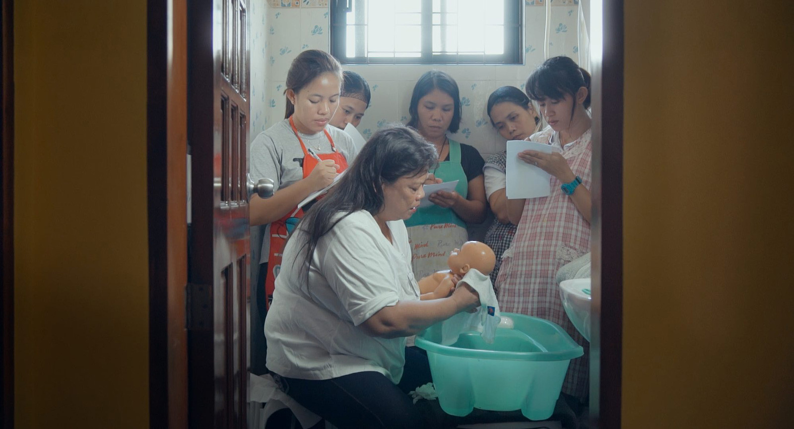 Aux Philippines, on déploie les femmes en masse à l’étranger comme aides ménagères ou nounous. Elles laissent souvent derrière elles leurs propres enfants, avant de se jeter dans l’inconnu. Dans un centre de formation au travail domestique, comme tant d’autres aux Philippines, un groupe de candidates au départ se préparent au mal du pays et aux maltraitances qui pourraient les atteindre. Lors d’exercices de jeux de rôles, les femmes se mettent tant dans la peau de l’employée que des employeu.r.se.s. Aux abords de la fiction, Overseas traite de la servitude moderne de notre monde globalisé, tout en révélant la détermination de ces femmes, leur sororité et les stratégies mises en place face aux épreuves que leur réserve l’avenir.