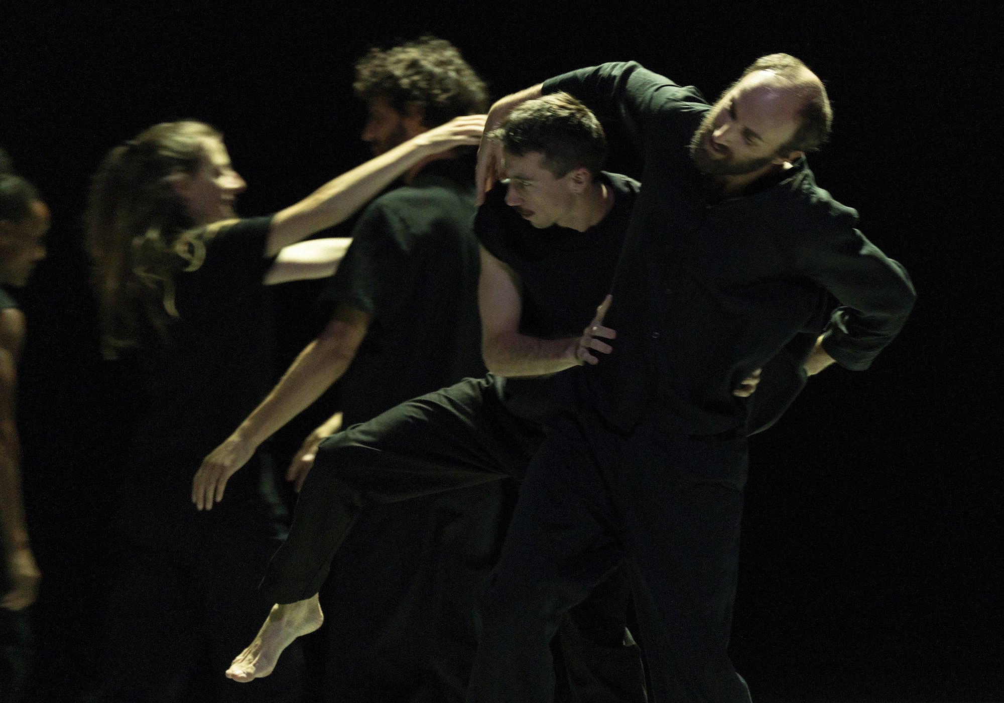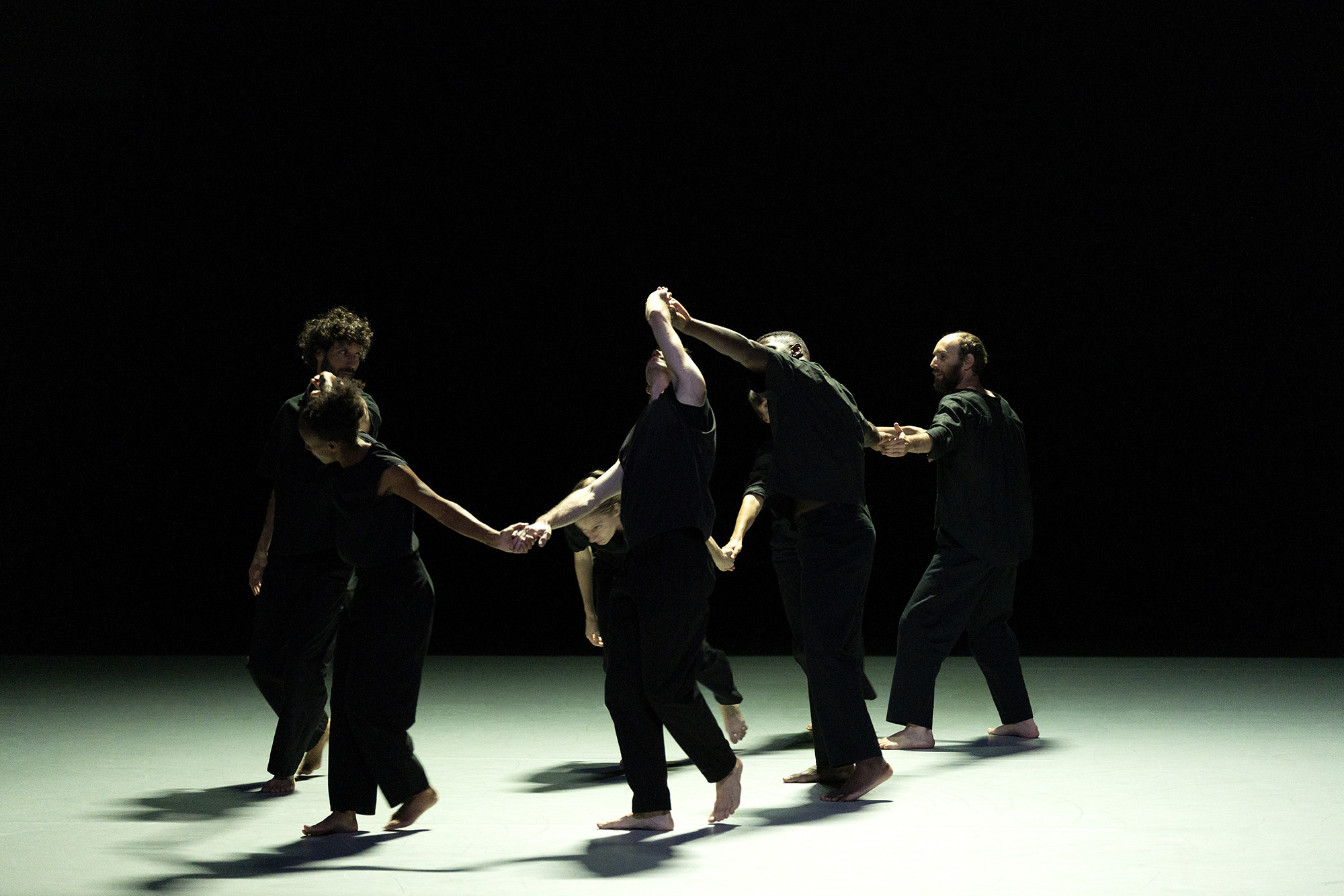 Sauts, effleurements, portés, rondes, bras tendus, mouvements suspendus, tous les gestes chorégraphiques inventés par Christian Rizzo se trouvent rassemblés et augmentés dans cette nouvelle pièce à l’émotion délicate. Solos, duos, trios… des groupes, des situations se forment et se déforment pour se recomposer, les neufs interprètes tissent des relations changeantes et dessinent des trajectoires mouvantes au gré des sons profonds de l’orgue, instrument rare dans les créations chorégraphiques. Les lumières subliment l’espace et dessinent une scénographie sensible, une invitation à suspendre le temps. Christian Rizzo, si souvent venu au TAP, nous happe une nouvelle fois et nous laisse en état d’apesanteur.