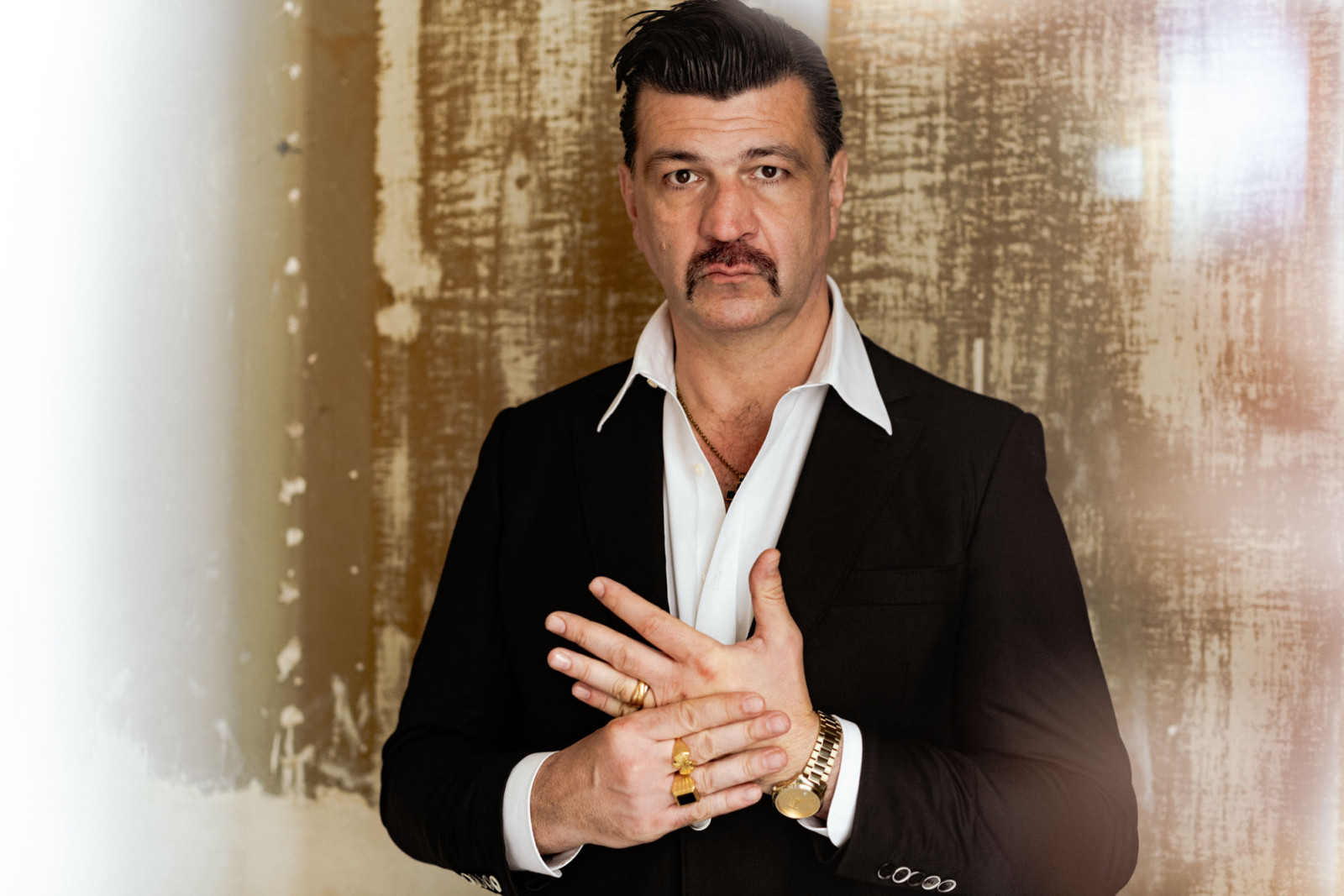 Derrière sa batterie de machines et de synthés, le grand moustachu retrouve le goût du live et règne en maître sur un son électro métallique et des montées entêtantes reconnaissables entre mille.