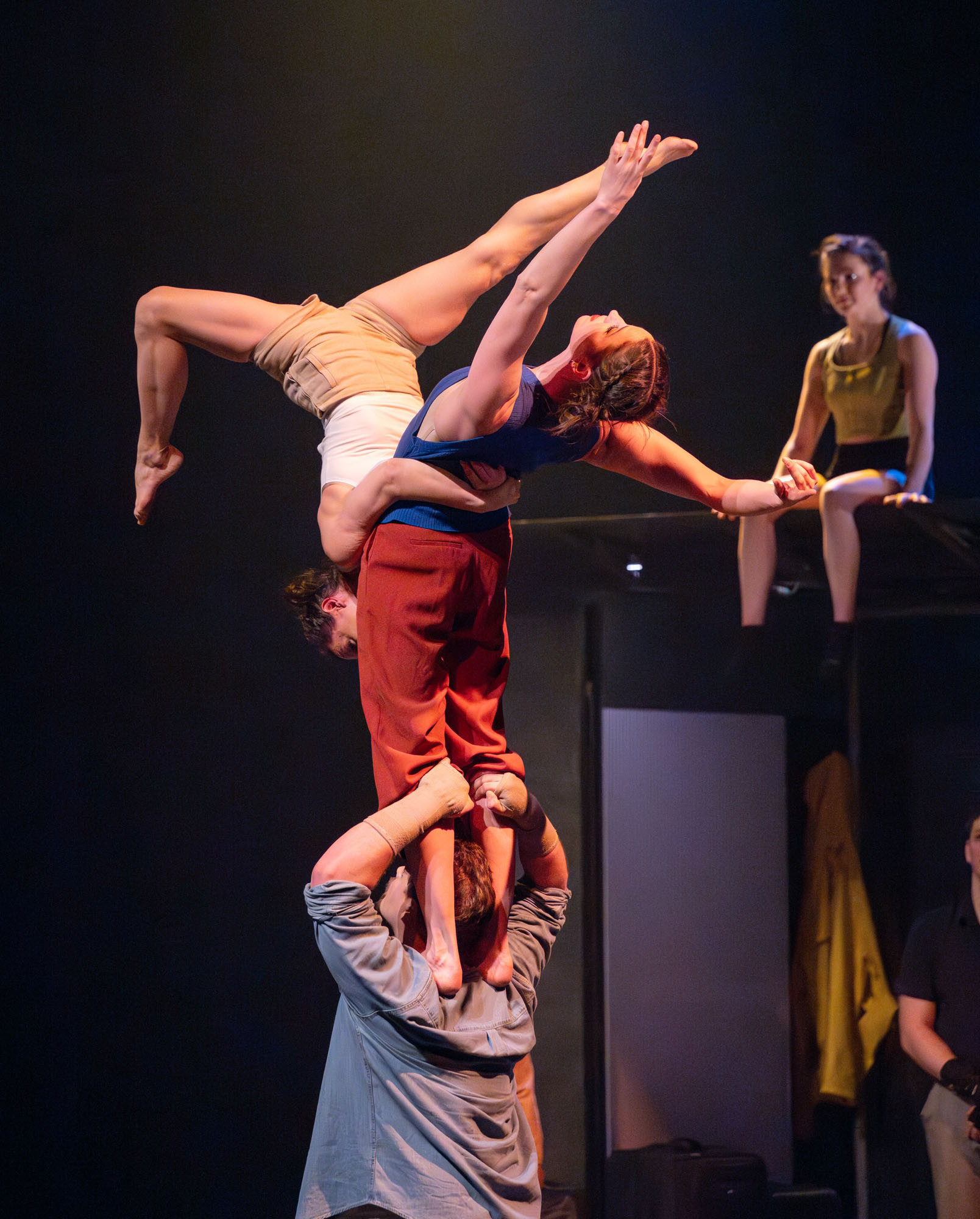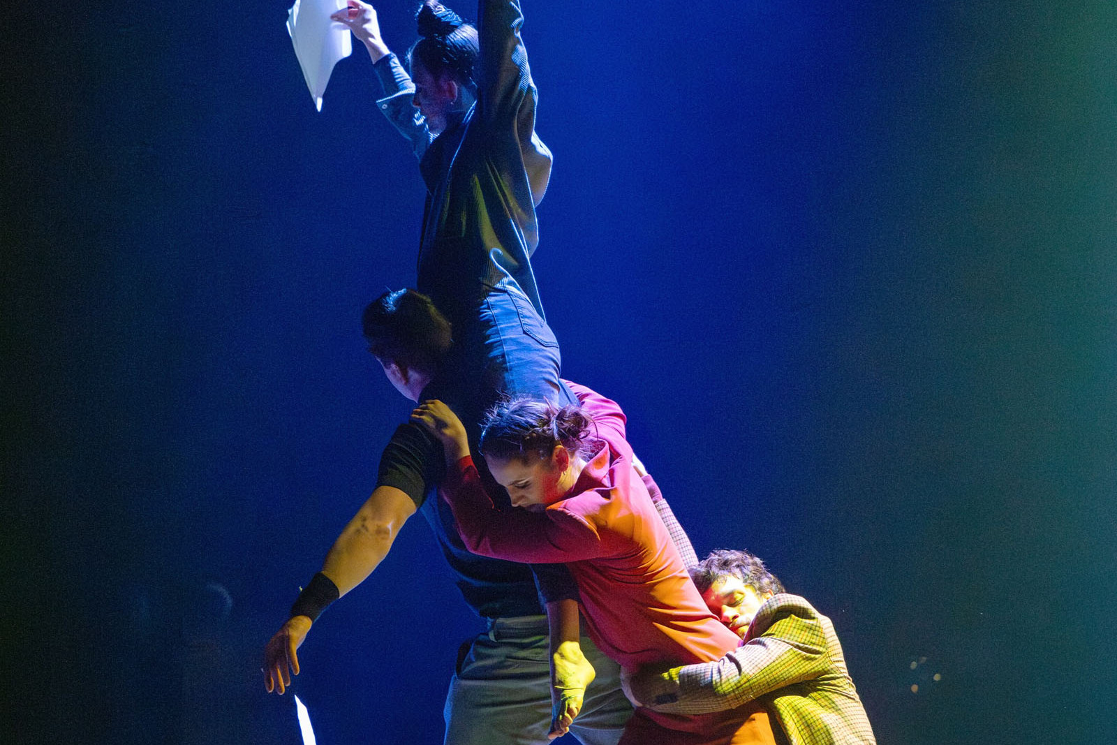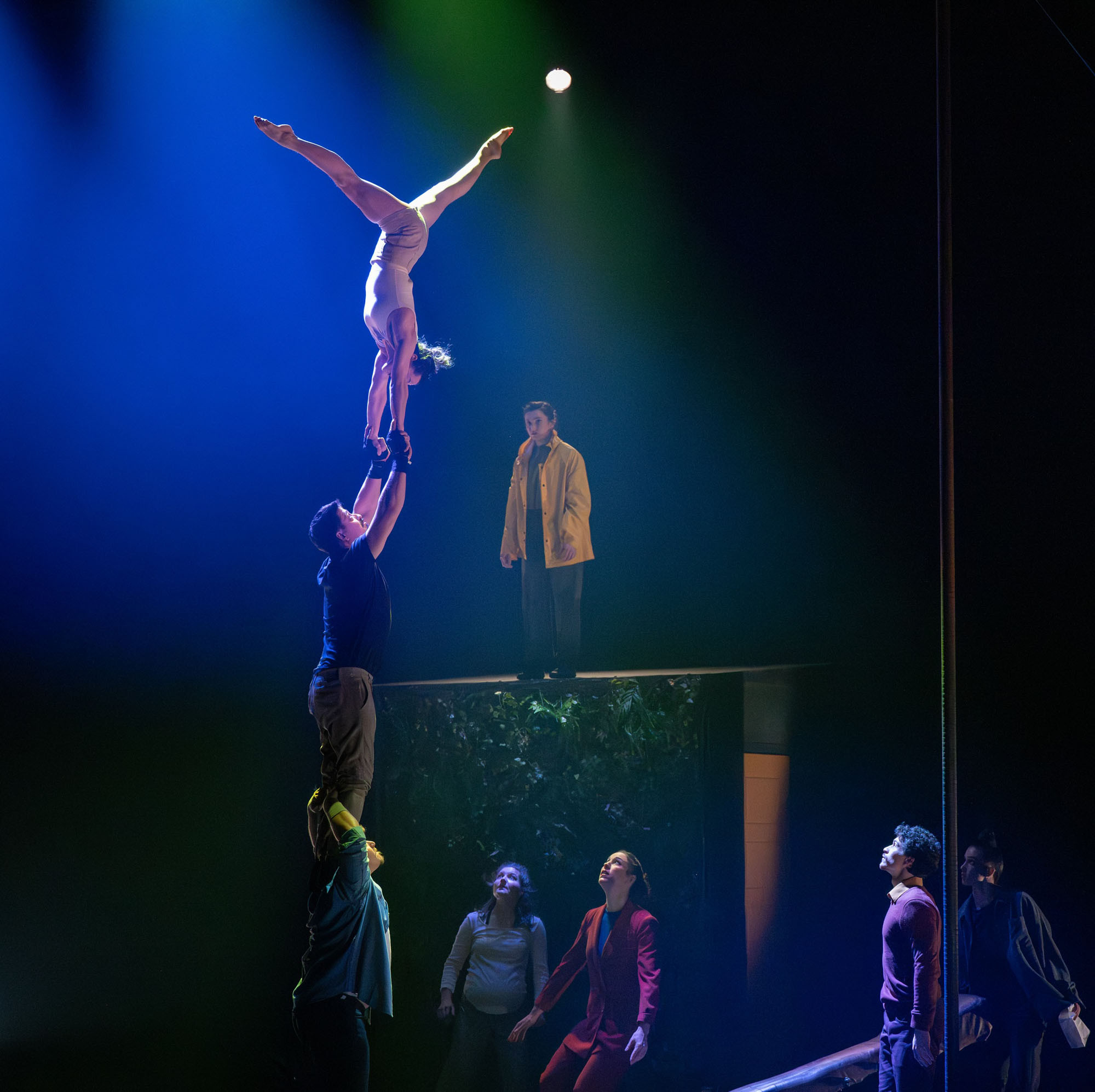 Changement de registre pour le mastodonte du cirque québécois connu pour ses spectacles effrénés (au TAP avec Machine de Cirque en 2023). Kintsugi file le doux et le mélancolique, en référence à cet art japonais de recoller la porcelaine cassée. Les morceaux épars, ce sont ces huit inconnus réunis à un arrêt de bus du bout du monde, en attente d’un départ vers un ailleurs. Cette communauté d’êtres hébétés va apprendre à se réparer, prenant l’acrobatie et l’entraide circassienne comme appuis dans un ballet des affections humaines. Sur le plateau au décor cinématographique, les prouesses d’une troupe rompue à toutes les disciplines du cirque s’éclairent d’une poésie nouvelle. Un spectacle à la beauté suspendue, qui fait de la résilience et de la solidarité ses plus beaux agrès.