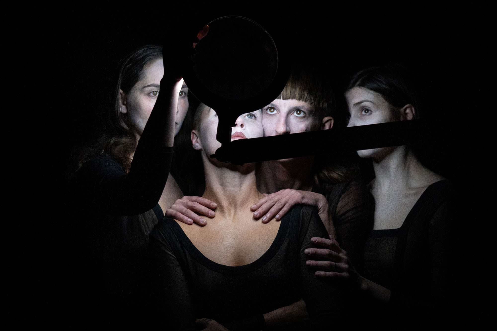 Clic clac, quatre femmes se tirent le portrait dans une succession de poses chorégraphiques, avec grincements inquiétants, bruits de verre et gestuelle syncopée. Après leurs performances chocs (Festival À Corps 2025), le collectif La Pieuvre revient avec une pièce ambitieuse, sous influence des autoportraits de Cindy Sherman. Qu’arrive-t-on à saisir de soi ? Comment donner une âme à l’image qu’on renvoie ? Dans une chambre noire aux éclairages de laboratoire, les quatre danseuses inquiétantes y répondent en tronçonnant leurs corps à coups de miroirs grossissants, zoomant et dézoomant nos regards dans un ballet millimétré d’apparitions/disparitions.