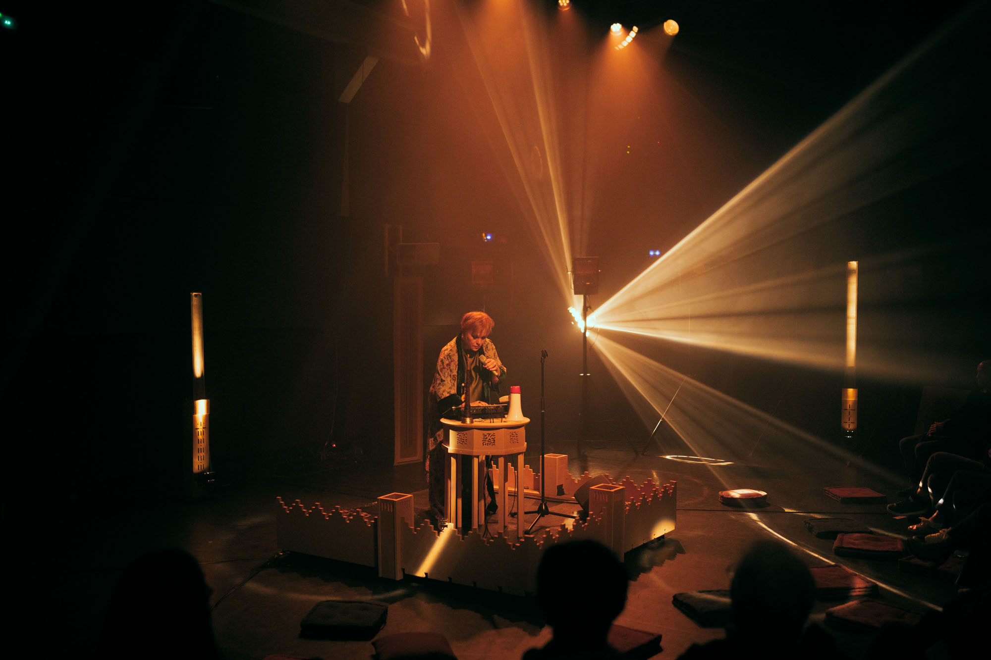 Au sein d’un décor rappelant l’architecture marocaine, 14 points d’écoute associés à des lumières en clair-obscur nous immergent dans un temps suspendu. Magnifique ode à la musicalité du monde oriental, cette performance nous convie à un voyage introspectif, une incantation proche de la transe.