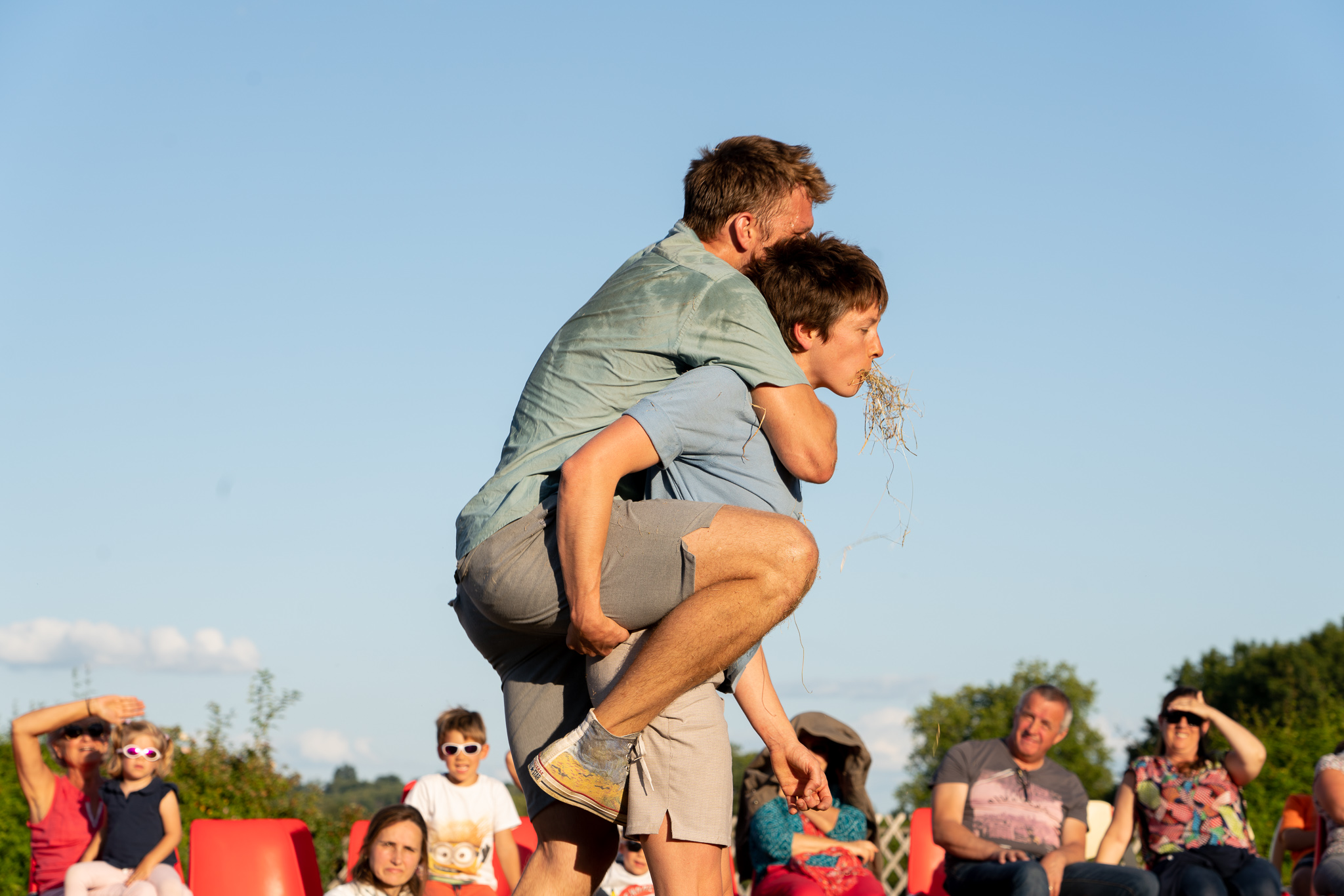 C’est un duo sauvage et tendre, qui s’inspire des chants de labour et des élans empruntés aux chevaux. Sur un sol herbeux, nous voilà transportés en des contrées sauvages. Sébastien Davis-VanGelder et O Pelpel mènent un cirque libre, au grand air, traversé par l’animalité. Leurs gestes indociles, leurs corps qui s’ébrouent et se rebiffent, leurs regards complices : tout participe à chambouler notre manière d’envisager les portés de cirque. L’un·e sur l’autre, côte-côte, ou à terre, Marcel·le et Claude brouillent les identités genrées et catapultent les rôles. Même la musique s’ébroue du baroque de Purcell à la folk américaine. Un numéro aérien qui donne le tournis… et le sourire.